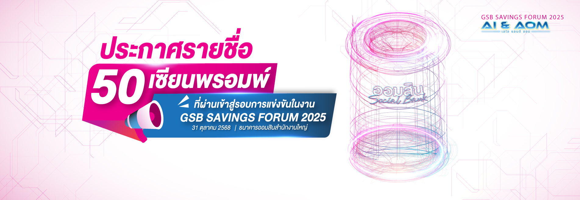 ฝากร่วมกับสลากออมสิน 1 ปี ลุ้นสองต่อ รางวัลที่ 1 มูลค่า 10 ล้านบาท