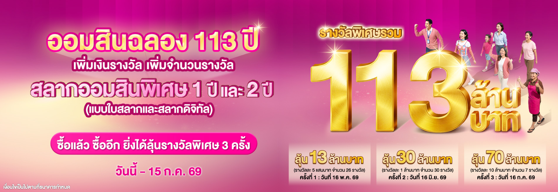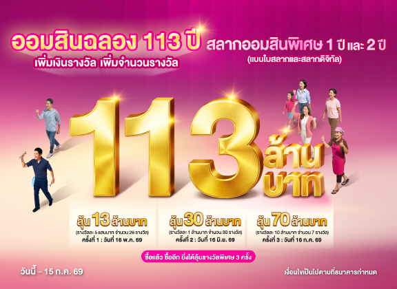 ออมสินฉลอง 113 ปี เพิ่มเงินรางวัล เพิ่มจำนวนรางวัล กับสลากออมสินพิเศษ 1 ปี และ 2 ปี (แบบใบสลากและสลากดิจิทัล)