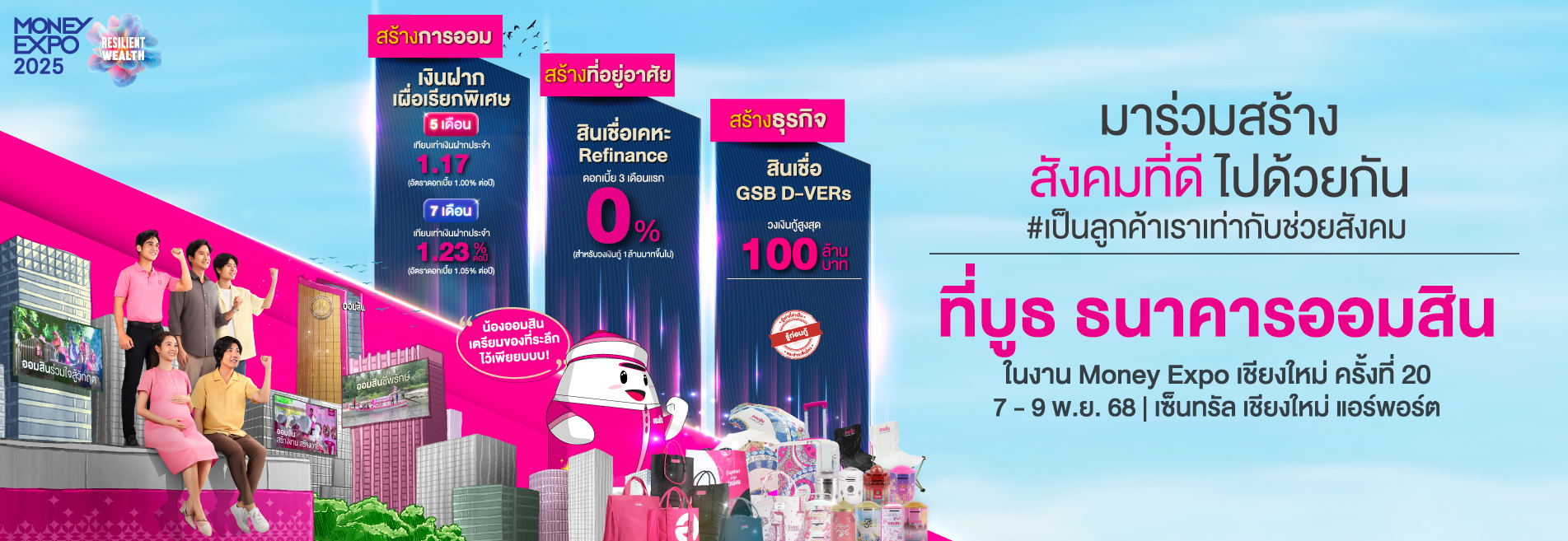 ระหว่างวันที่ 7 - 9 พ.ย. 2568 เซ็นทรัล เชียงใหม่ แอร์พอร์ต โปรโมชันสุดพิเศษ เงินฝาก / สลากออมสิน สินเชื่อบุคคล GSB NPA สินเชื่อธุรกิจรายย่อย สินเชื่อธนาคารประชาชน GOOD MONEY เงินดีดี สินเชื่อธุรกิจ สินเชื่อ GSB D-VERs สินเชื่อโฉนดเพื่อธุรกิจ Fast Track สินเชื่อ GSB ReBiz Max ผลิตภัณฑ์บัตร บัตรเดบิต บัตรเครดิต ประกัน กิจกรรมภายในงาน