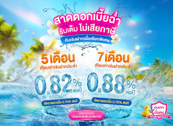 สาดดอกเบี้ยฉ่ำ รับเต็ม ไม่เสียภาษี กับเงินฝากเผื่อเรียกพิเศษ 5 เดือน และเงินฝากเผื่อเรียกพิเศษ 7 เดือน