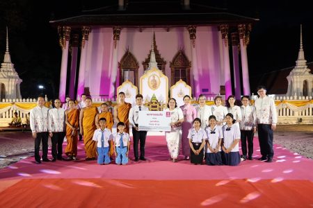 ในโอกาสนี้ ได้มอบทุนการศึกษาให้กับสามเณร นักเรียน และนักศึกษา จากโรงเรียนพระบรมธาตุพิทักษ์วิทยา (พระปริยัติธรรมวัดพระมหาธาตุวรมหาวิหาร) โรงเรียนวัดพระมหาธาตุ โรงเรียนพระธาตุมูลนิธิมัธยม และมหาวิทยาลัยมหามกุฏราชวิทยาลัย รวมจำนวน 40 ทุน พร้อมมอบเครื่องคอมพิวเตอร์และอุปกรณ์ จำนวน 22 เครื่อง ภายใต้โครงการคอมพิวเตอร์เพื่อสังคม และเก้าอี้เลกเชอร์ ให้กับโรงเรียนพระบรมธาตุพิทักษ์วิทยา เพื่อส่งเสริมและพัฒนาให้เด็กนักเรียนได้รับโอกาสเข้าถึงเทคโนโลยี ข้อมูลข่าวสารอย่างเท่าเทียม