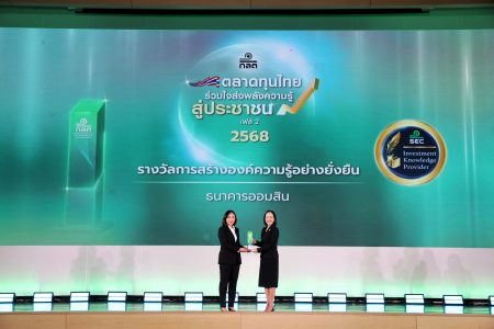 เมื่อวันจันทร์ที่ 15 ธันวาคม พ.ศ. 2568 คุณอมลภา บุญอยู่ ผู้อำนวยการฝ่ายบริหารผลิตภัณฑ์และการขายลูกค้าบุคลากรภาครัฐ และคุณสุนันท์ธนา จันทร์พานิช ผู้อำนวยการฝ่ายส่งเสริมการออมและ CSR เป็นผู้แทนธนาคารรับรางวัลเชิดชูเกียรติ “การสร้างองค์ความรู้อย่างยั่งยืน” (Sustainability Award) และ “ความคิดสร้างสรรค์ยอดเยี่ยม” (Creativity Awards) ในโครงการ “ตลาดทุนไทย ร่วมใจส่งพลังความรู้ สู่ประชาชน” เฟส 2 ปี 2568 จาก ศ.ดร.พรอนงค์ บุษราตระกูล เลขาธิการ สำนักงานคณะกรรมการกำกับหลักทรัพย์และตลาดหลักทรัพย์ โดย ก.ล.ต. จัดการมอบรางวัลขึ้น เพื่อเชิดชูเกียรติแก่องค์กรและบุคคลที่มีส่วนร่วมในการสร้างสรรค์ พัฒนา ต่อยอดแนวทางการให้ความรู้ด้านการเงินการลงทุน และส่งเสริมการเข้าถึงองค์ความรู้ที่ถูกต้อง เหมาะสม เป็นประโยชน์แก่ประชาชนในวงกว้าง ในการนี้ ธนาคารได้รับตราสัญลักษณ์พิเศษ “Investment Knowledge Provider” เพื่อนำไปใช้ประชาสัมพันธ์ในการจัดกิจกรรมการให้ความรู้และพัฒนาทักษะทางการเงินของธนาคารด้วย ณ สโมสรทหารบก (วิภาวดี) กรุงเทพฯ