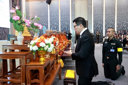 เมื่อวันศุกร์ที่ 9 มกราคม พ.ศ. 2569 ธนาคารออมสินโดยคุณเสกสรร ทวีกสิกรรม รองผู้อำนวยการธนาคารออมสิน กลุ่มลูกค้าฐานรากและสนับสนุนนโยบายรัฐ ร่วมในพิธีทำบุญตักบาตรพระสงฆ์ จำนวน 9 รูป เนื่องในโอกาสวันขึ้นปีใหม่ พุทธศักราช 2569 ซึ่งมีดร.เอกนิติ นิติทัณฑ์ประภาศ รองนายกรัฐมนตรีและรัฐมนตรีว่าการกระทรวงการคลัง เป็นประธาน พร้อมร่วมพิธีเจริญพระพุทธมนต์ในโอกาสดังกล่าวร่วมกับหน่วยงานในสังกัดและกำกับของกระทรวงการคลัง ณ อาคาร 150 ปี กระทรวงการคลัง