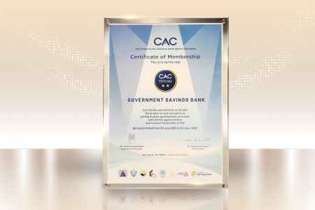 เมื่อวันจันทร์ที่ 24 พฤศจิกายน พ.ศ. 2568 ธนาคารออมสินได้รับการรับรองเป็นสมาชิกแนวร่วมต่อต้านคอร์รัปชันของภาคเอกชนไทย (Thai Private Sector Collective Action Against Corruption) โดยคุณสมพรรษ เพ็งจันทร์ ผู้ช่วยผู้อำนวยการธนาคารออมสิน สายงานกำกับและควบคุม เป็นผู้แทนธนาคาร เข้ารับประกาศนียบัตรการรับรองธนาคารออมสินเป็นเป็นสมาชิกของแนวร่วมต่อต้านคอร์รัปชันของภาคเอกชนไทย โดยการรับรองดังกล่าวจะมีอายุ 3 ปี ในงาน CAC Certification Ceremony ครั้งที่ 2/2025 ภายใต้ชื่องาน “CAC Incentive Pool : ร่วมสร้างสิทธิประโยชน์แห่งความโปร่งใส เพื่อธุรกิจไทยยั่งยืน” ณ โรงแรมไฮแอท รีเจนซี่ กรุงเทพ