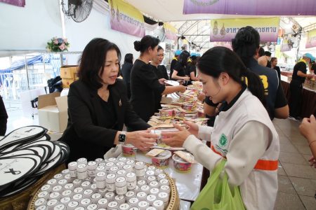 นางสมจิตร์ ทองจุ้น ผู้ช่วยผู้อำนวยการธนาคารออมสิน สายงานกิจการสาขา 1 และนางปรีดาพร ป้องกันภัย รักษาการผู้อำนวยการธนาคารออมสินภาค 3 พร้อมคณะ เป็นผู้แทนธนาคารออมสินร่วมนำอาหารปรุงสุกพร้อมรับประทานและน้ำดื่ม รวมกว่า 500 ชุด บริการประชาชนที่เดินทางมาร่วมกราบสักการะพระบรมศพสมเด็จพระนางเจ้าสิริกิติ์ พระบรมราชินีนาถ พระบรมราชชนนีพันปีหลวง เพื่อแสดงความจงรักภักดี และเป็นส่วนหนึ่งในการแสดงความอาลัย และน้อมรำลึกในพระมหากรุณาธิคุณ ณ บริเวณท้องสนามหลวง เมื่อวันที่ 16 มกราคม 2569