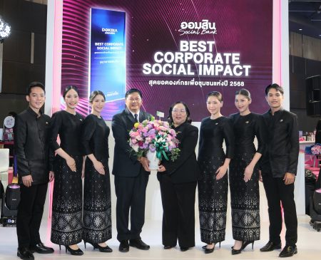 นางลภาวรรณ จันทร์กระจ่าง รองผู้อำนวยการธนาคารออมสิน รักษาการแทนผู้อำนวยการธนาคารออมสิน เป็นผู้แทนธนาคารรับรางวัลเกียรติยศ Best Corporate Social Impact 2025 สุดยอดองค์กรเพื่อชุมชนแห่งปี 2568 จาก นายวิทัย รัตนากร ผู้ว่าการธนาคารแห่งประเทศไทย ประธานในพิธีมอบรางวัล DOKBIA AWARDS ภายในงาน Thailand Smart Money กรุงเทพฯ ครั้งที่ 16 ด้วยธนาคารออมสินมีความโดดเด่นในการเป็น “ธนาคารเพื่อสังคม” ที่มีเป้าหมายลดความเหลื่อมล้ำและสร้างความเป็นธรรมในสังคมหลากหลายมิติ ทั้งสังคม เศรษฐกิจ และสิ่งแวดล้อม รวมทั้งการนำเสนอบริการทางการเงินที่ครอบคลุมลูกค้าทุกกลุ่ม โดยเฉพาะการสนับสนุนการเข้าถึงแหล่งเงินทุนอย่างเป็นธรรมและสร้างความแข็งแกร่งให้กับเศรษฐกิจฐานราก การแก้ปัญหาหนี้นอกระบบและหนี้ครัวเรือน สนับสนุนธุรกิจที่คำนึงถึงผลกระทบต่อสิ่งแวดล้อมและชุมชน และสร้างผลกระทบเชิงบวกแก่สังคม และด้วยความโดดเด่นของแนวคิด “เป็นลูกค้าเราเท่ากับช่วยสังคม” สะท้อนว่านอกจากธนาคารจะทำหน้าที่ช่วยเหลือสังคมโดยตรงแล้ว ยังร่วมสร้างจิตสำนึกที่ดีของลูกค้าธนาคารในการเป็นส่วนหนึ่งของกระบวนการช่วยเหลือสังคมทั้งทางตรงและทางอ้อมอีกด้วย โดยมี นายรัฐกร อัสดรธีรยุทธ์ ประธานเครือหนังสือพิมพ์ดอกเบี้ย และประธานจัดงาน Thailand Smart Money พร้อมด้วย นางสาววชิรา การสุทธิ์ รองผู้อำนวยการธนาคารออมสิน และผู้บริหาร ร่วมแสดงความยินดี