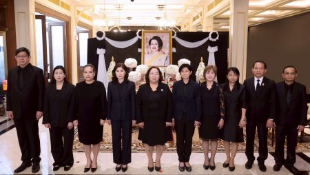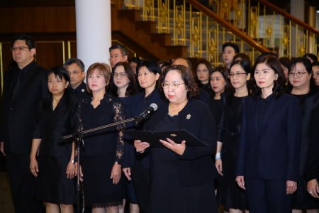 นางลภาวรรณ จันทร์กระจ่าง รองผู้อำนวยการธนาคารออมสิน รักษาการผู้อำนวยการธนาคารออมสิน นำคณะผู้บริหารและพนักงาน ร่วมพิธีแสดงความอาลัยถวายแด่สมเด็จพระนางเจ้าสิริกิติ์ พระบรมราชินีนาถ พระบรมราชชนนีพันปีหลวง พร้อมยืนสงบนิ่ง และลงนามถวายความอาลัย เพื่อน้อมรำลึกในพระมหากรุณาธิคุณและแสดงความจงรักภักดี ณ ธนาคารออมสิน สำนักงานใหญ่ เมื่อวันที่ 27 ตุลาคม 2568