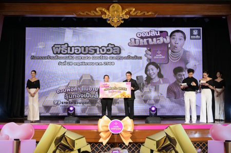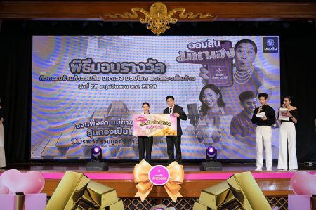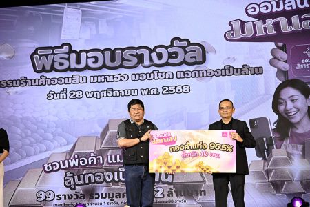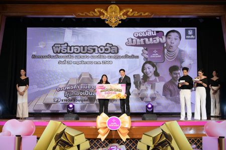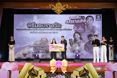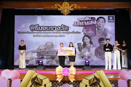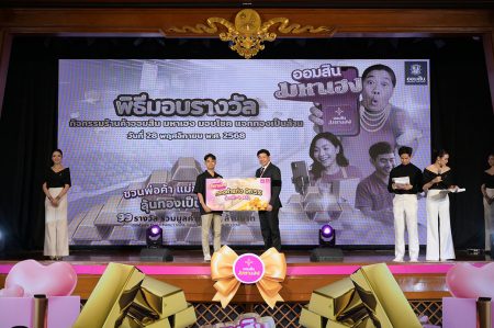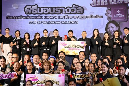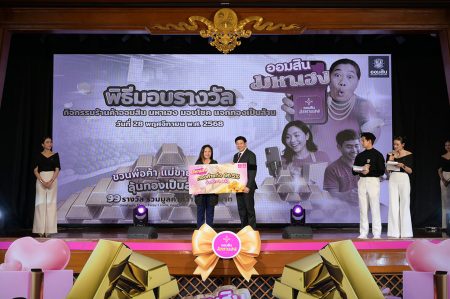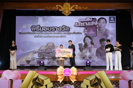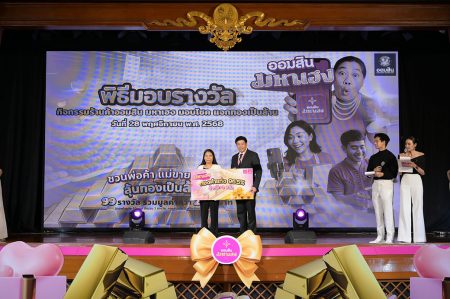 พิธีมอบรางวัลกิจกรรม “ร้านค้าออมสิน มหาเฮง มอบโชค แจกทองเป็นล้าน” มอบแก่ผู้โชคดี จำนวน 99 รางวัล รางวัลที่ 1 ทองคำหนัก 10 บาท 1 รางวัลและ ทองคำหนัก 1 สลึง 98 รางวัล โดยจัดวันที่ 28 พฤศจิกายน 2568 ณ หอประชุมบุรฉัตร ธนาคารออมสินสำนักงานใหญ่