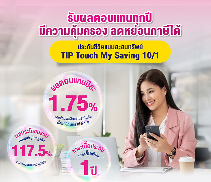ประกันชีวิตประเภทสามัญ แบบสะสมทรัพย์ TIP Touch My Savings 10/1